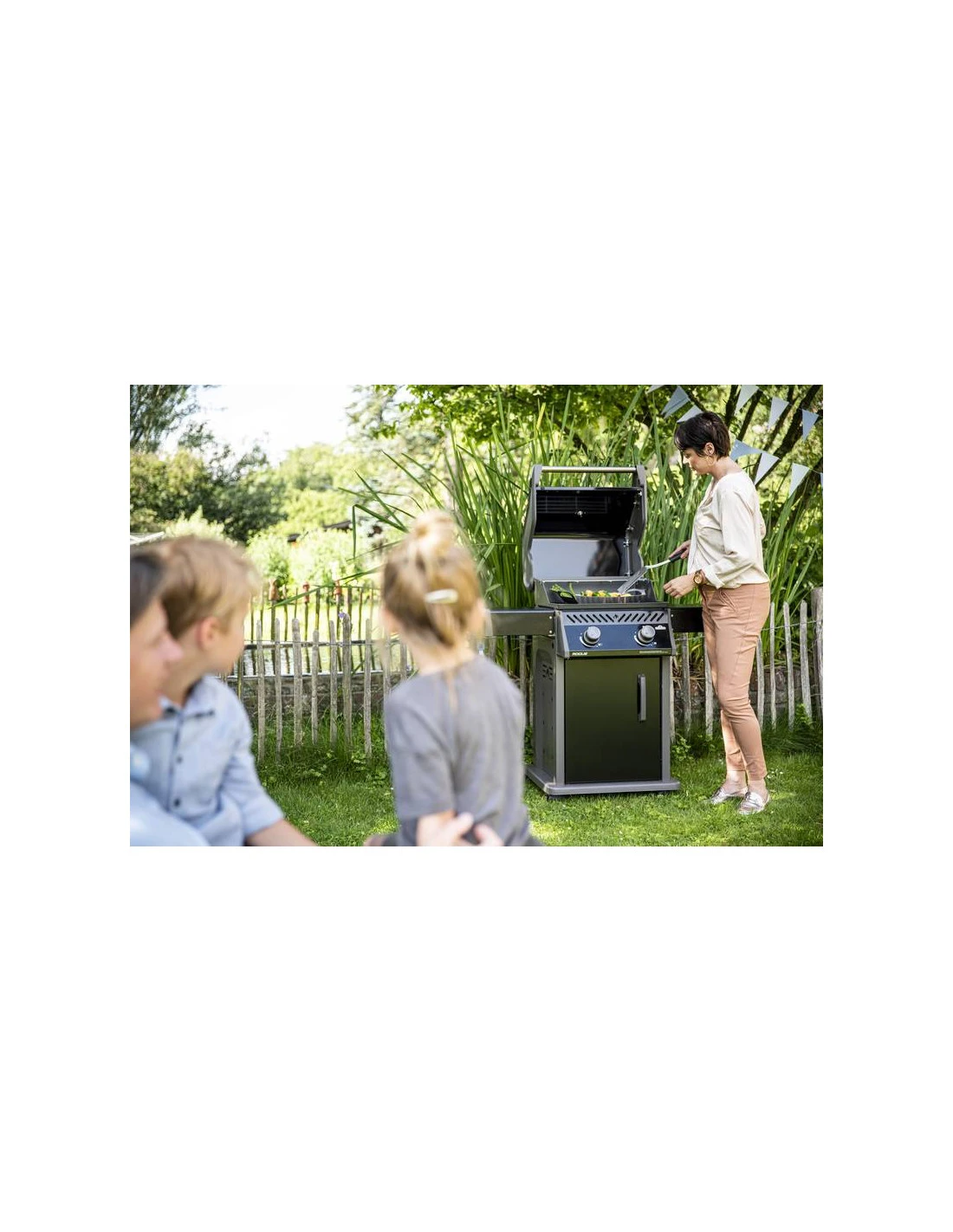 Le plus petit modèle de la gamme offre une puissance de 9,5 kW dispensée par 2 brûleurs en acier inoxydable. Avec une surface de cuisson de 51 x 45 cm, ce barbecue est parfait pour vos repas entre amis ou en famille ! Les grilles de cuisson sont en fonte émaillée.
