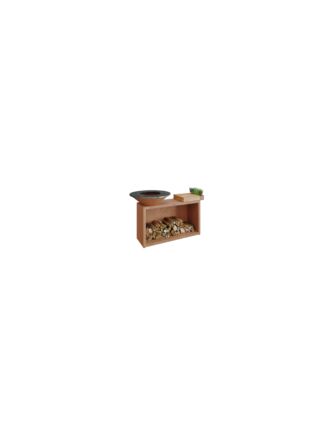 Le socle et la cuve de ce modèle sont en acier corten. La corrosion superficielle subie par l’acier permet l’obtention d’une couleur ocre profond, qui s’intègre harmonieusement dans les jardins, des plus classiques aux plus contemporains. L’acier corten résiste durablement aux conditions atmosphériques.
