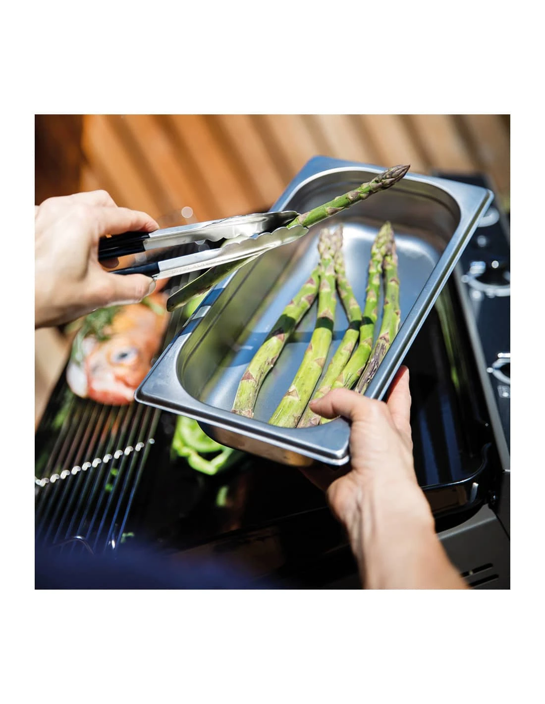 Ce coffret regroupe utilement tous les ustensiles indispensables pour bien cuisiner à la plancha : une spatule large, une pince inox large, une planche et un bac gastro pour réserver vos préparations.
