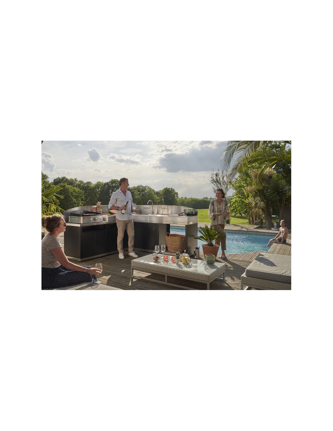 Ces cuisines d’extérieur sont fabriquées à partir de matériaux de haute qualité pour garantir leur durabilité et ainsi résister à des conditions météorologiques difficiles. En inox satiné et acier peinture époxy couleur noir, elles sont résistantes à la rouille et à la corrosion. Élégante et épurée, ces cuisines d’extérieur sont parfaites pour accorder praticité et design.