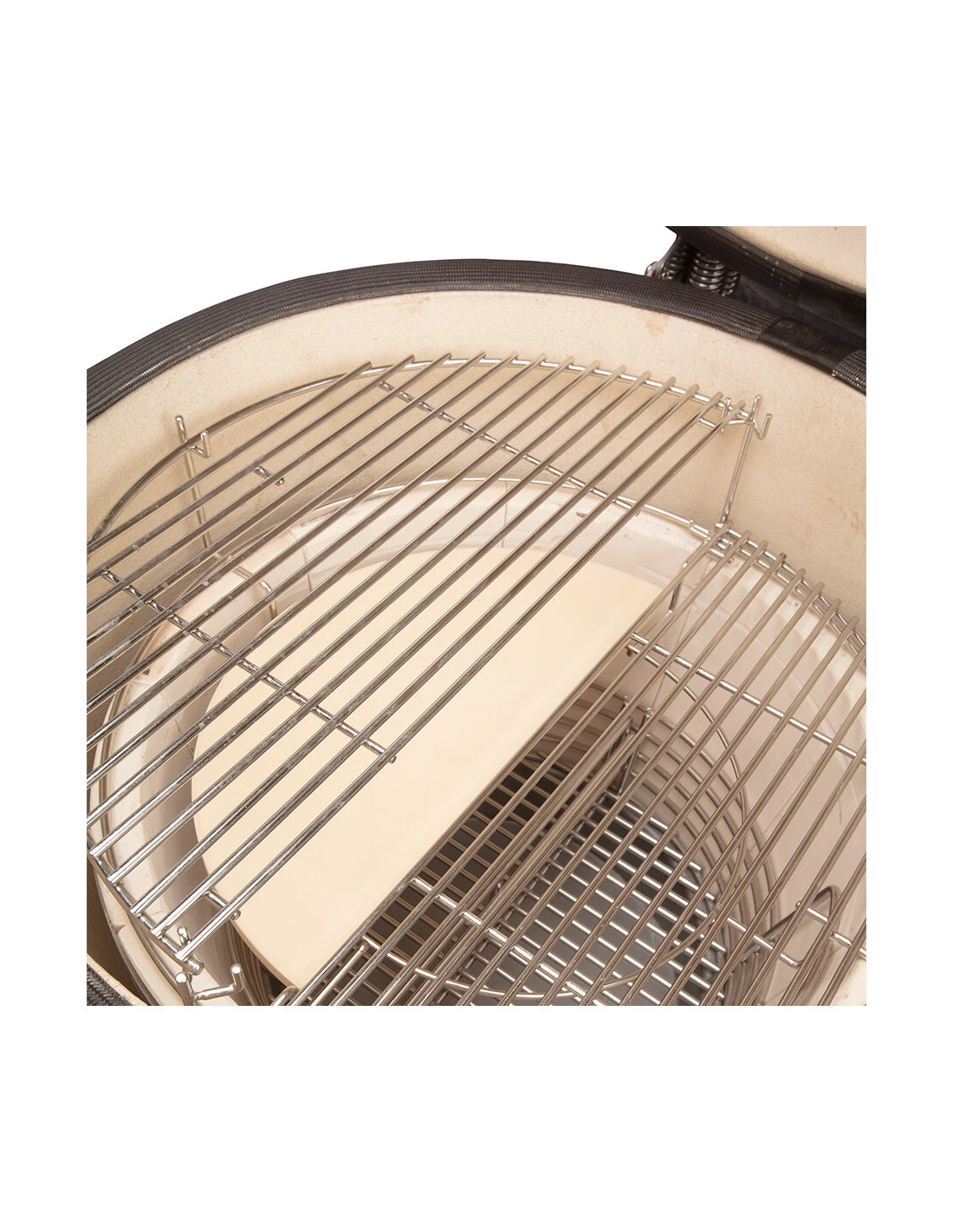 Le Pro Set Yakuniku est composé d’un élévateur multi niveaux, de 2 demi-déflecteurs pour la cuisson indirecte et 2 demi-grilles de cuisson. Les déflecteurs se placent au niveau les plus bas. Les grilles peuvent être positionnées et réparties sur les 2 niveaux supérieurs selon la chaleur voulue et pour disposer de 2 zones de chaleurs différentes.