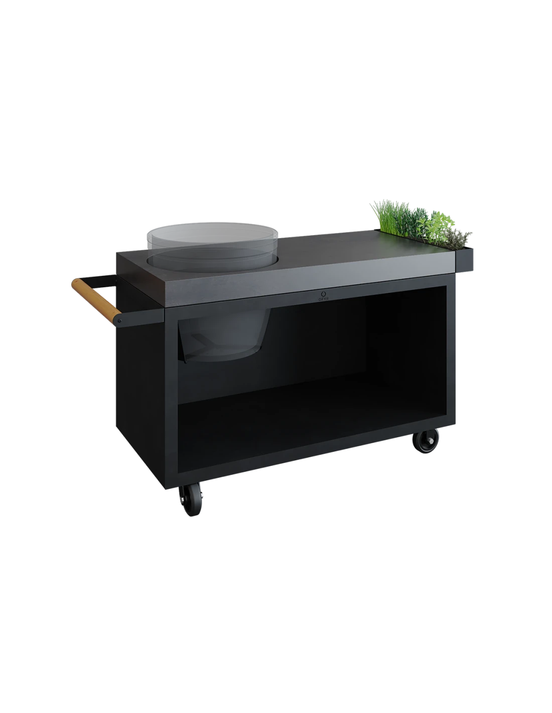 En plus du plan de travail, vous retrouverez de grands espaces de rangements. Un premier à l’extrémité de la table ou vous pourrez y déposer différents petits accessoires : spatule, pince, fourchette… et un second sous le plan de travail qui peut être aménagé avec des inserts de la gamme PRO et Ofyr Insert Pro avec ou sans porte. Parfait pour y laisser votre charbon, vos accessoires de cuisson…