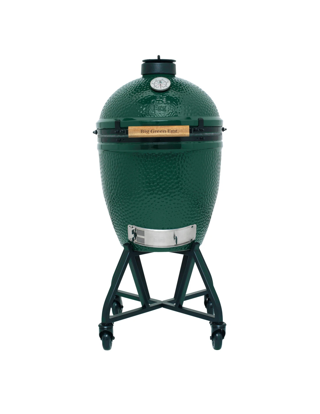 Le Big Green Egg L est le best seller de la marque : Avec 46 cm de diamètre pour surface de cuisson, ce kamado convient aux repas familiaux et entre amis. Les éléments composant ce modèle sont : la cuve et du couvercle en céramique émaillée, le couvercle est équipé d’un thermomètre, le régulateur de ventilation en bas de la cuve, le bouchon à event qui vient se poser sur la cheminée du couvercle qui comme le régulateur de ventilation permet le contrôle précis de la température, la chambre de combustion en céramique, la grille à charbon, l’anneau interne en céramique maintien la distance nécessaire entre le charbon et la grille de cuisson, la grille de cuisson en inox, le système de charnière et cerclage permettant le maintien du couvercle Pour commencer à cuisiner, nous vous conseillons de compléter le kamado par un support de votre choix, un racloir à cendres, et surtout le ConveGGtor qui permet de faire du kamado un véritable four.
