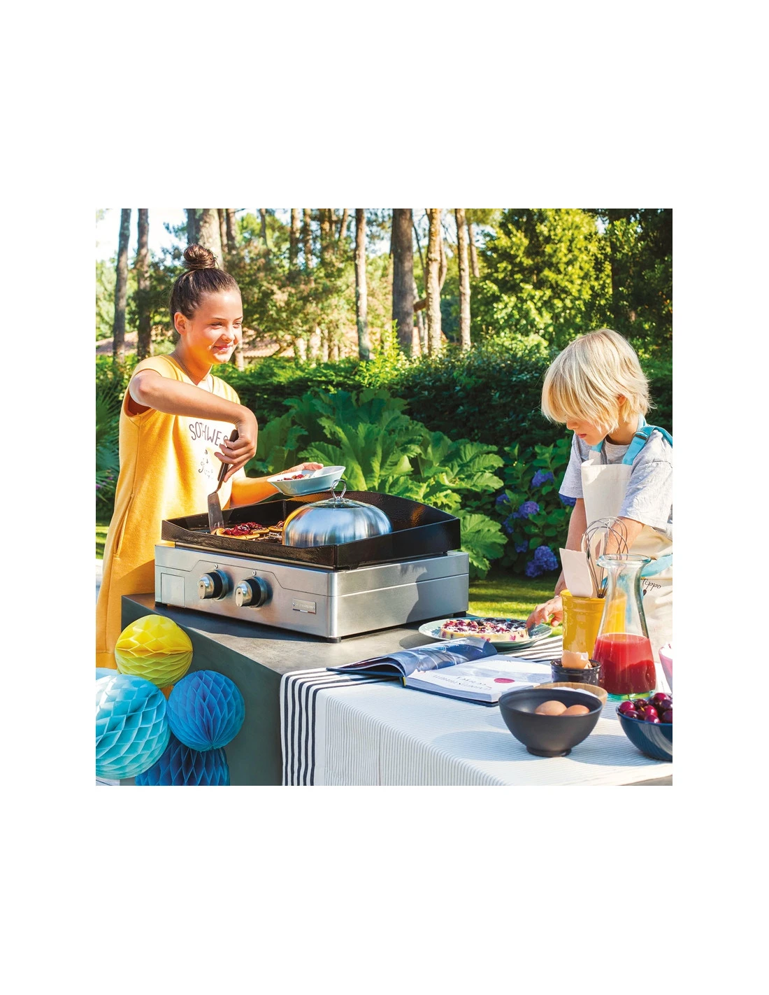 Avec un poids aux alentours de 27 kg, cette plancha électrique est très solide. Elle dispose d’un châssis en inox satiné qui saura résister à la corrosion ainsi qu’aux intempéries.